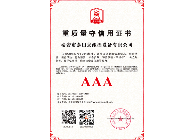 泰安市泰山泉釀酒設(shè)備有限公司,是一家專業(yè)從事釀酒設(shè)備機械化研發(fā)并集技術(shù)咨詢,工程設(shè)計,制造安裝,人員培訓(xùn)及售后服務(wù)為一體的綜合性企業(yè),本公司主要產(chǎn)品為:大曲清香、小曲清香、大曲醬香、大曲濃香等香型白酒機械化設(shè)備。  本公司與中國科學(xué)院自動化研究所簽訂技術(shù)服務(wù)合同,引進先進技術(shù),研究生產(chǎn)全自動化機械釀酒設(shè)備,由中國科學(xué)自動化研究所的技術(shù)支持,打造最先進的生產(chǎn)釀酒設(shè)備,公司有信心打造全國最先進白酒...